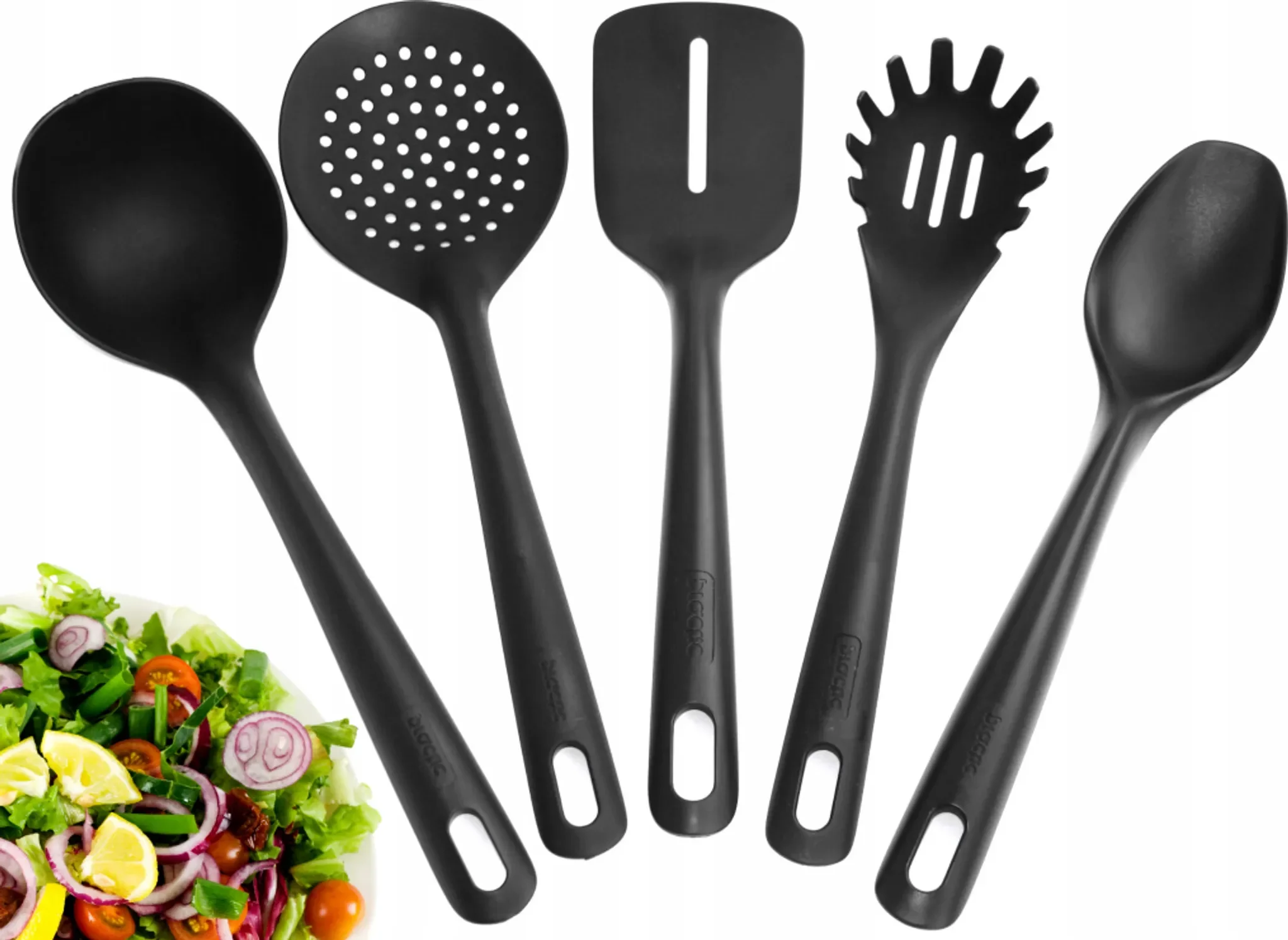 Lieferumfang: 5-teiliges Küchenzubehör Set in Schwarz