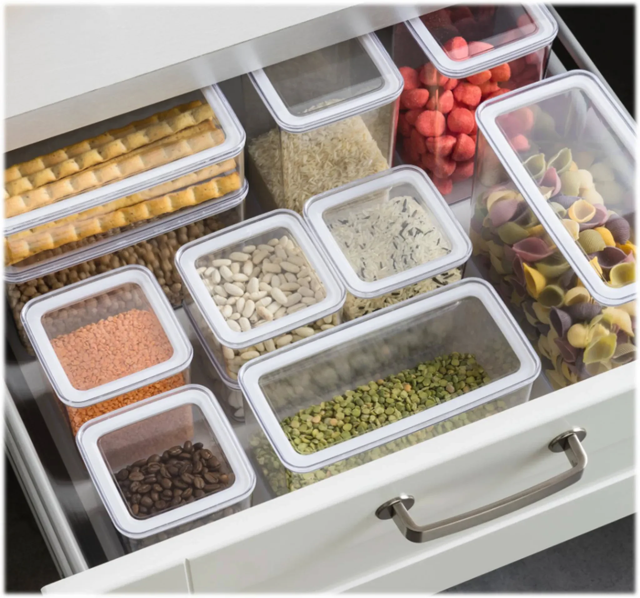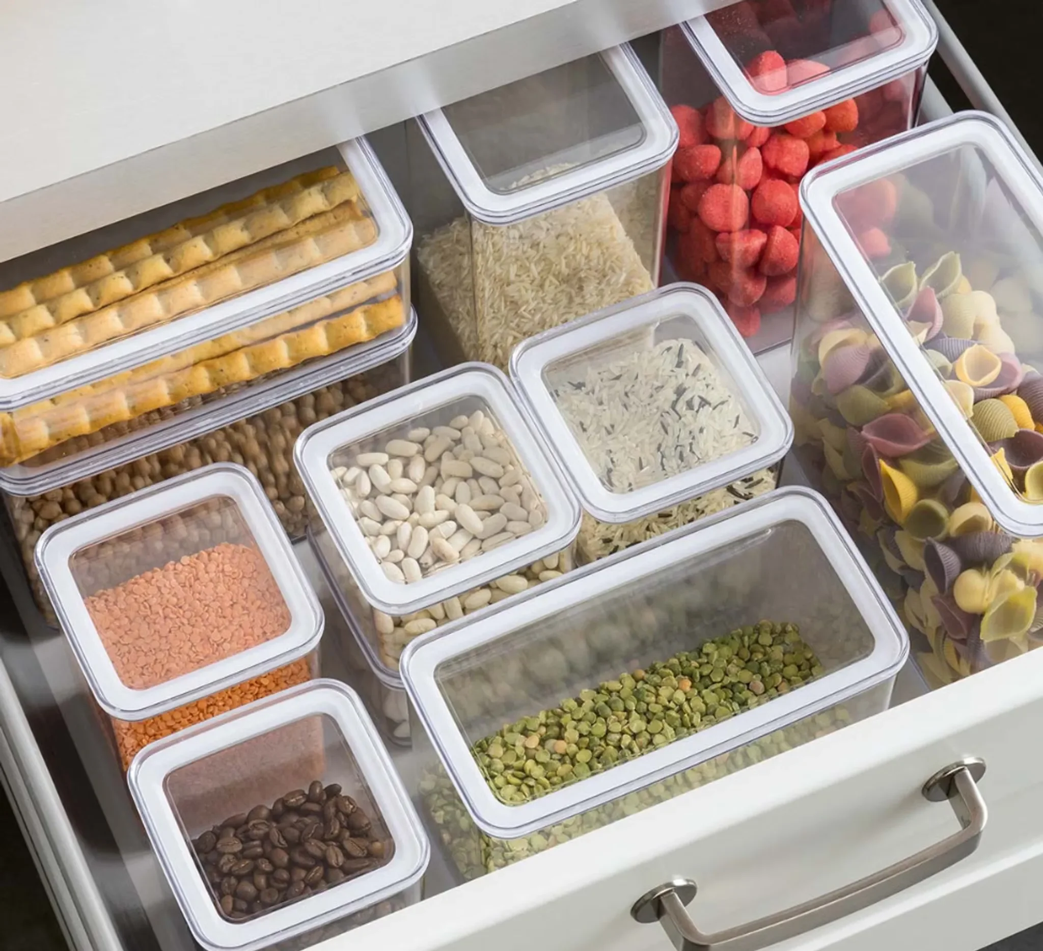 Highlights: Praktische, stapelbare Lebensmittelbox für trockene und feuchte Lebensmittel, luftdicht verschließbar, transparent für einfache Übersicht, ideal für Ordnung in Küche und Haushalt.
