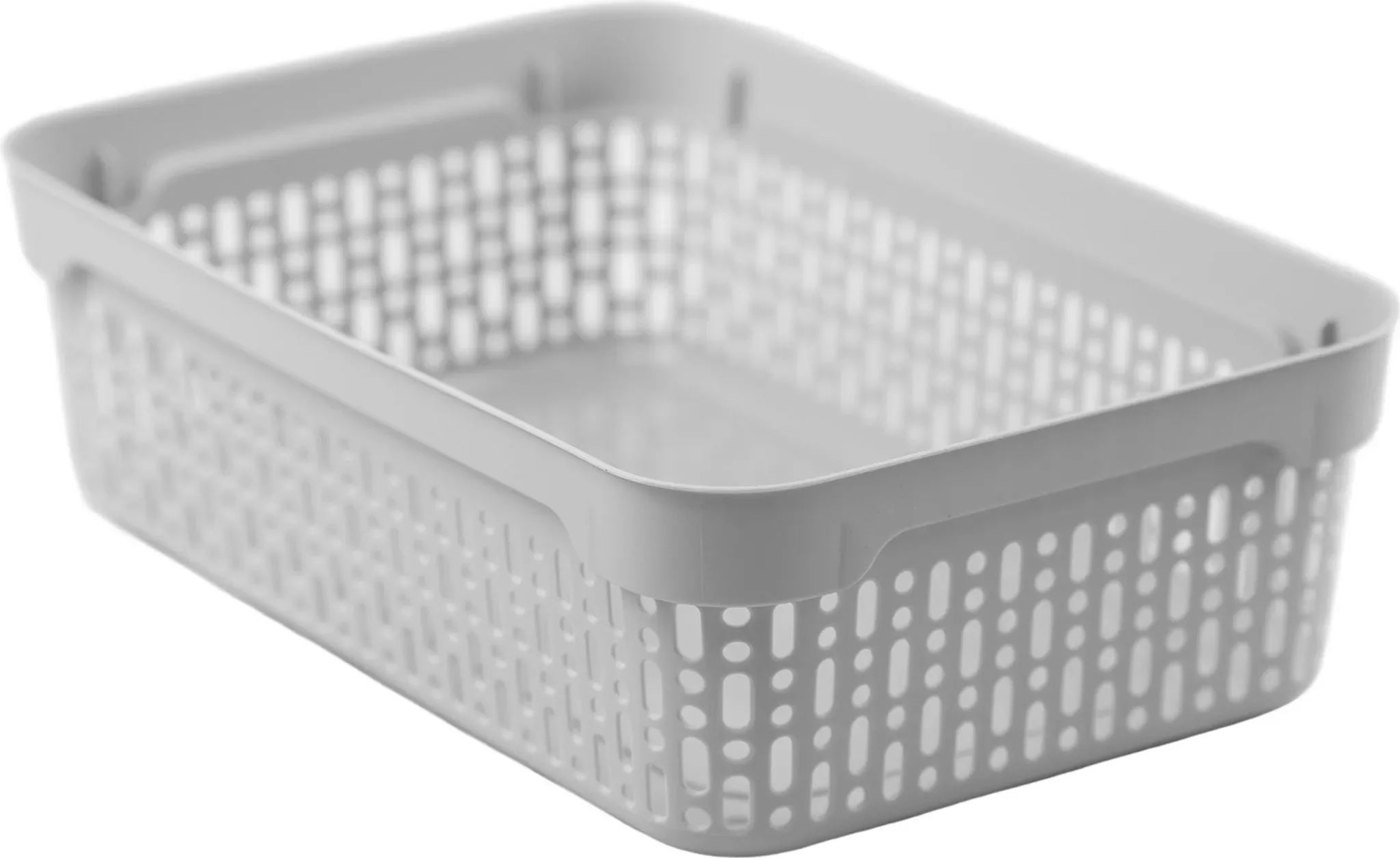 Dieser durchbrochene Aufbewahrungskorb aus Kunststoff ist eine praktische und zugleich ästhetische Lösung für mehr Ordnung im Alltag. Die hellgraue Farbgebung und die moderne Form machen ihn zu einem vielseitig kombinierbaren Organizer für unterschiedliche Wohnbereiche.