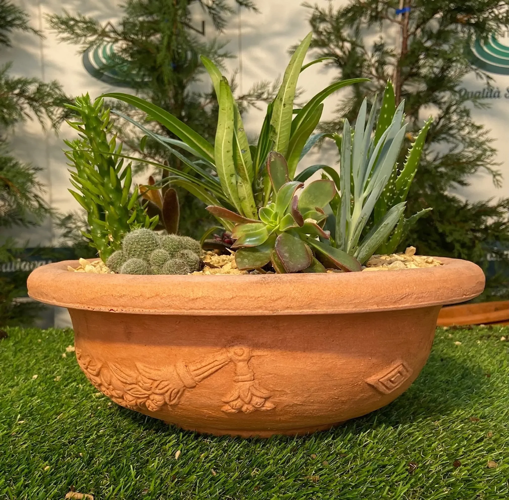 Gefertigt aus hochwertigem, farbigem Kunstharz ist die Schale besonders leicht, dennoch äußerst robust und witterungsbeständig. Sie ist frostfest, schimmelhemmend und benötigt keinerlei Wartung – ideal für den dauerhaften Einsatz drinnen wie draußen.