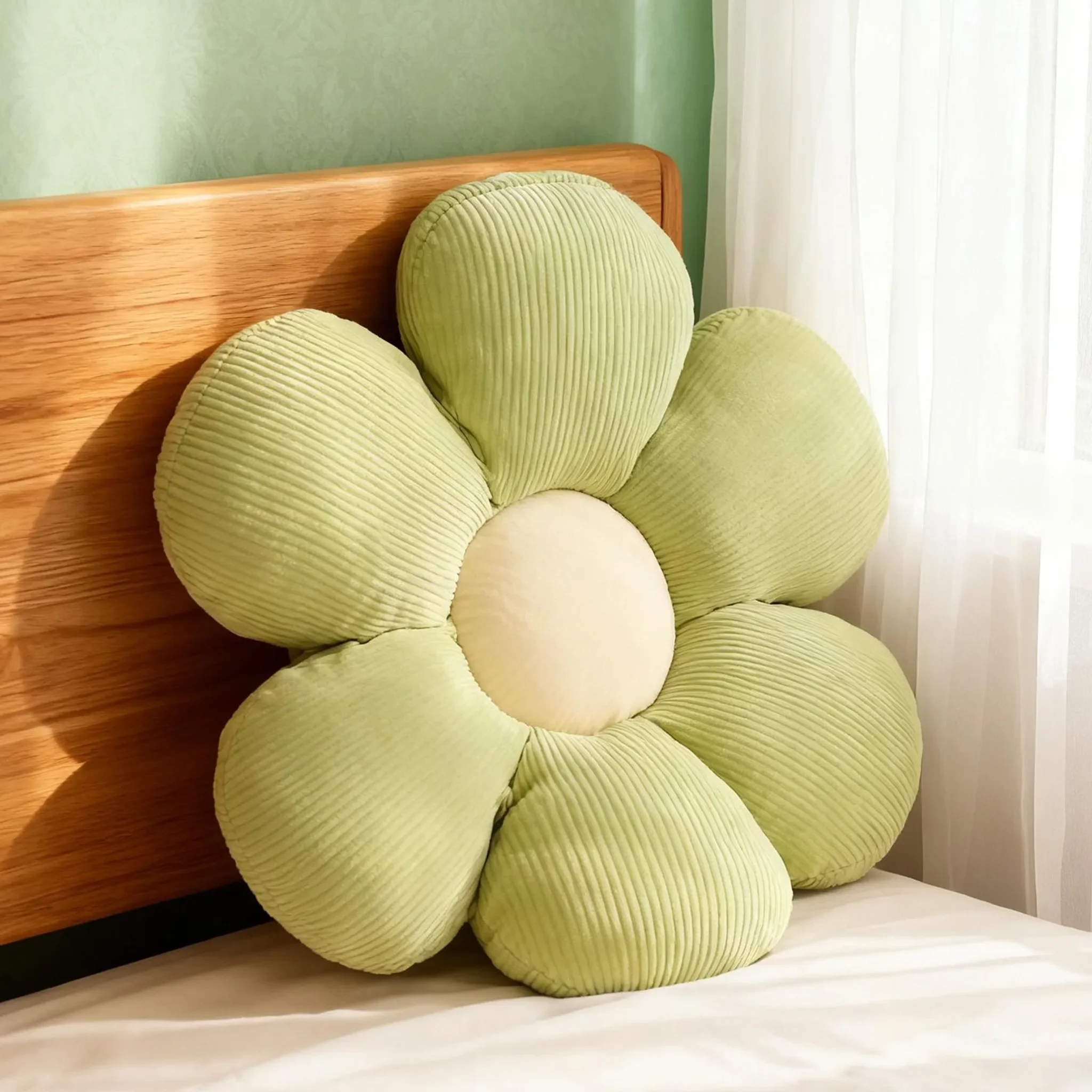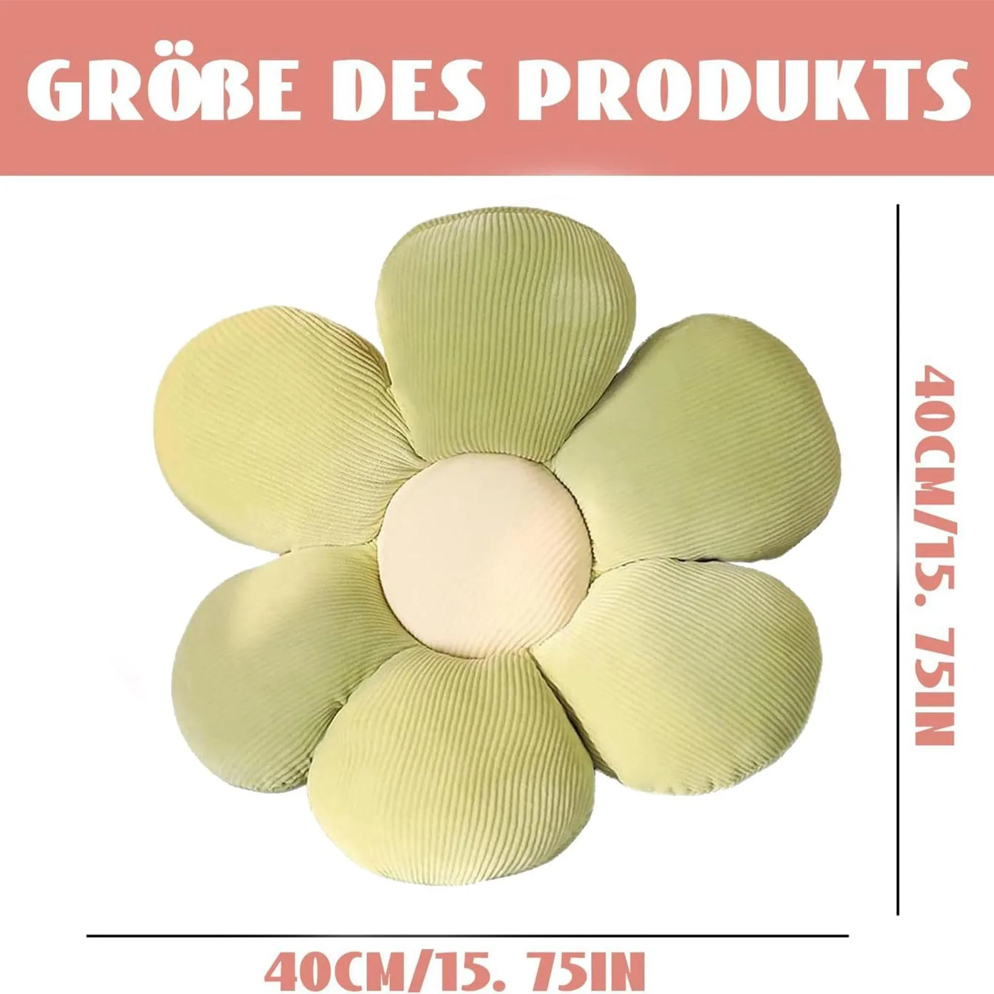 Dieses blütenförmige Dekokissen bringt mit seinem frischen Sonnenblumen-Design eine freundliche, gemütliche Note in jeden Wohnraum. Die weichen Blütenblätter und die harmonische Farbgebung machen es zu einem dekorativen Blickfang auf Sofa, Bett oder Boden.