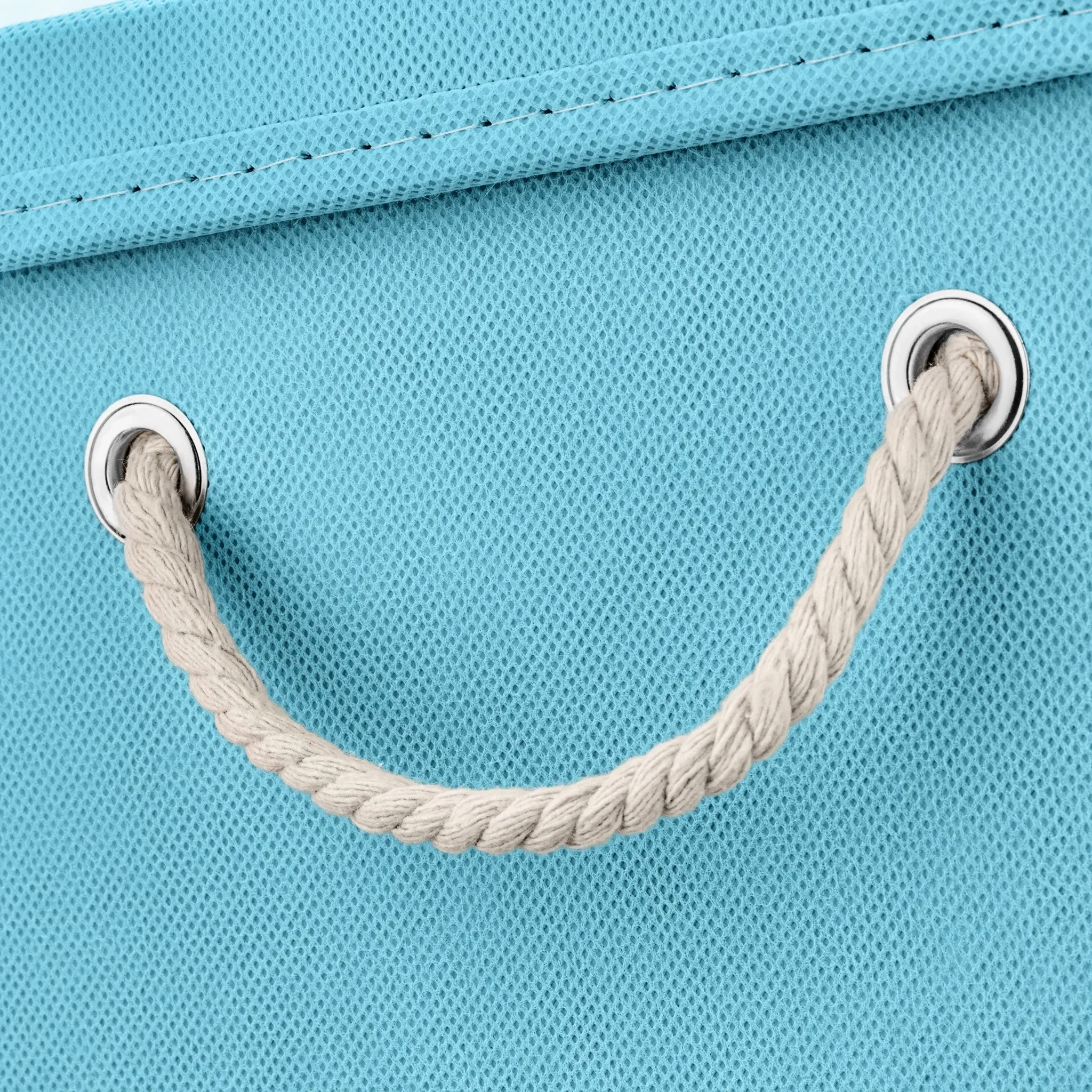 Dank stabiler Hartkartonwände und -böden bietet die Box eine hohe Formstabilität. Eine Metallöse an der Vorderseite sowie eine dekorative Kordel erleichtern das Herausziehen. Bei Nichtgebrauch lässt sich die Box platzsparend zusammenfalten und ist im Handumdrehen wieder einsatzbereit.
