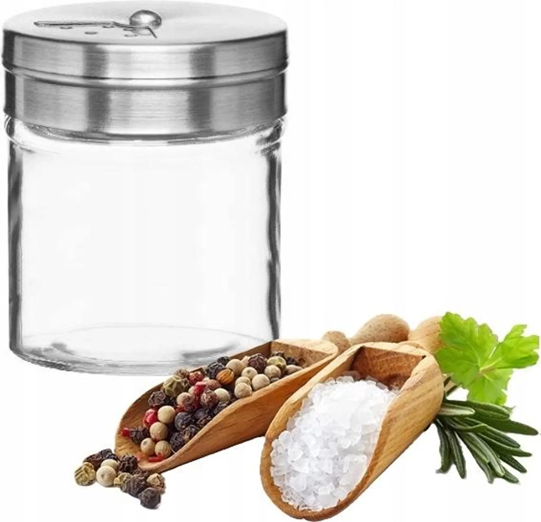 Highlights: Transparentes Glas, langlebiger Edelstahl-Deckel, präzise Dosierung, schützt Aromastoffe, stilvolles Küchenaccessoire.