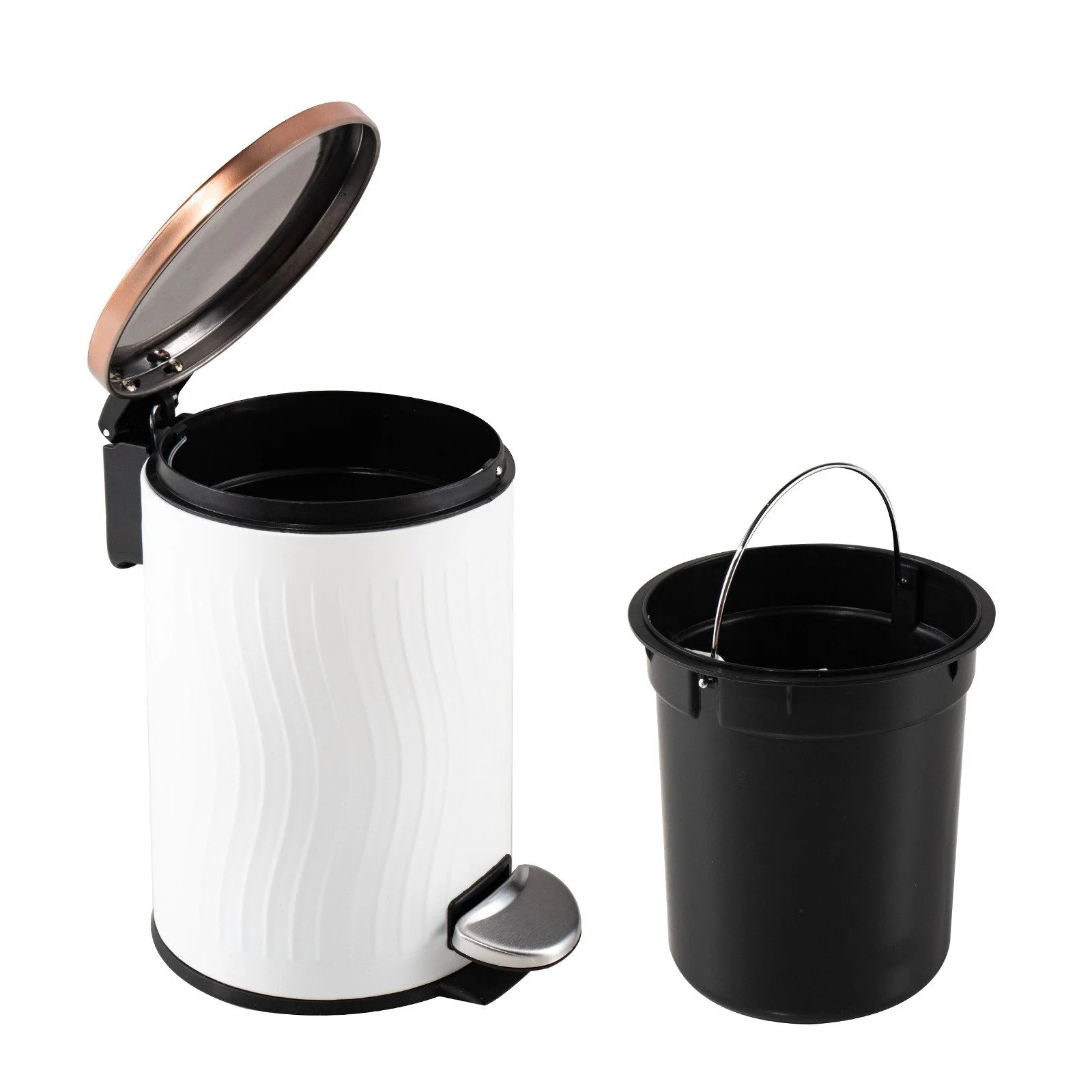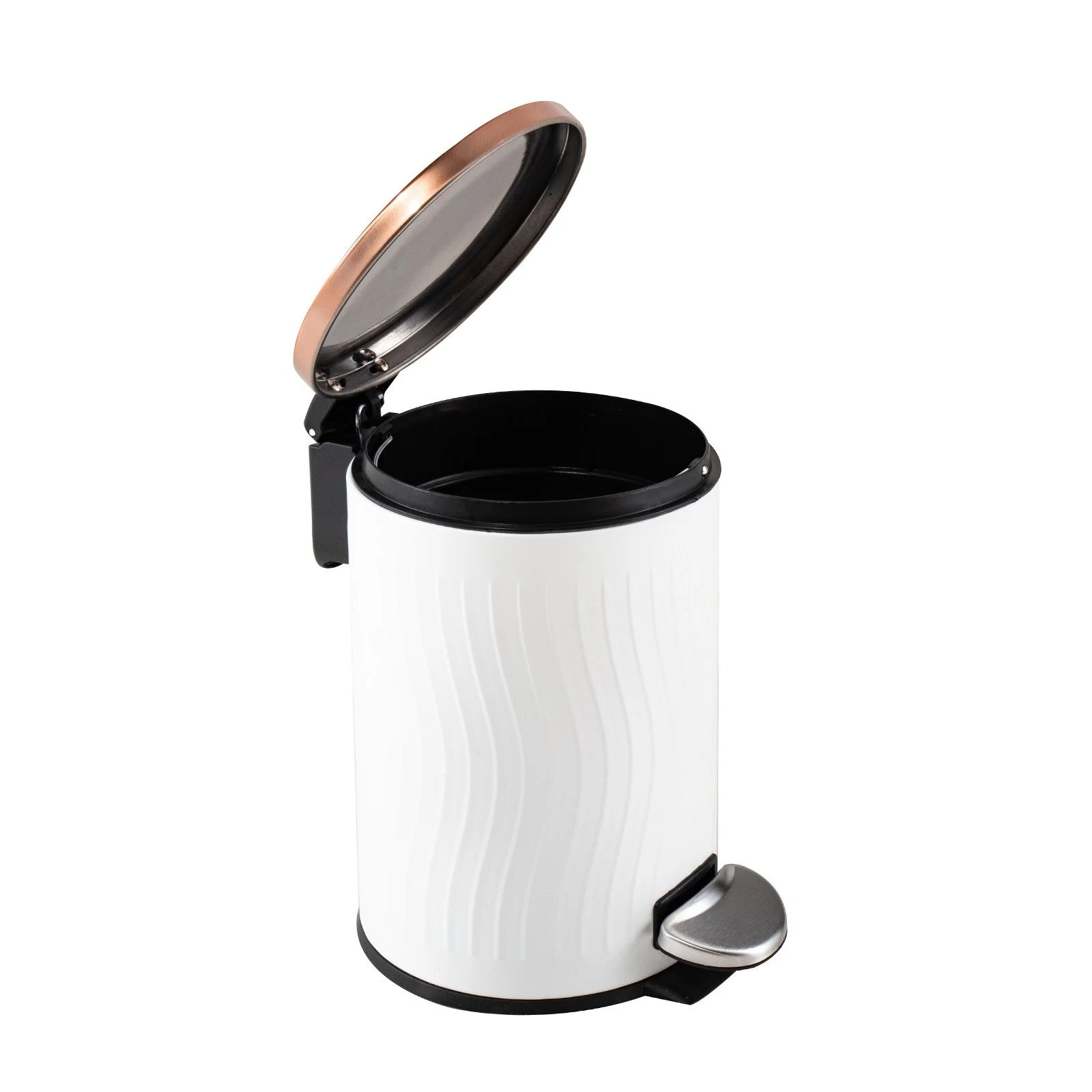 Highlights: Elegantes Wellenrelief, kupferfarbener Soft-Close-Deckel, hygienische Bedienung per Fuß, herausnehmbarer Inneneimer für einfache Reinigung.