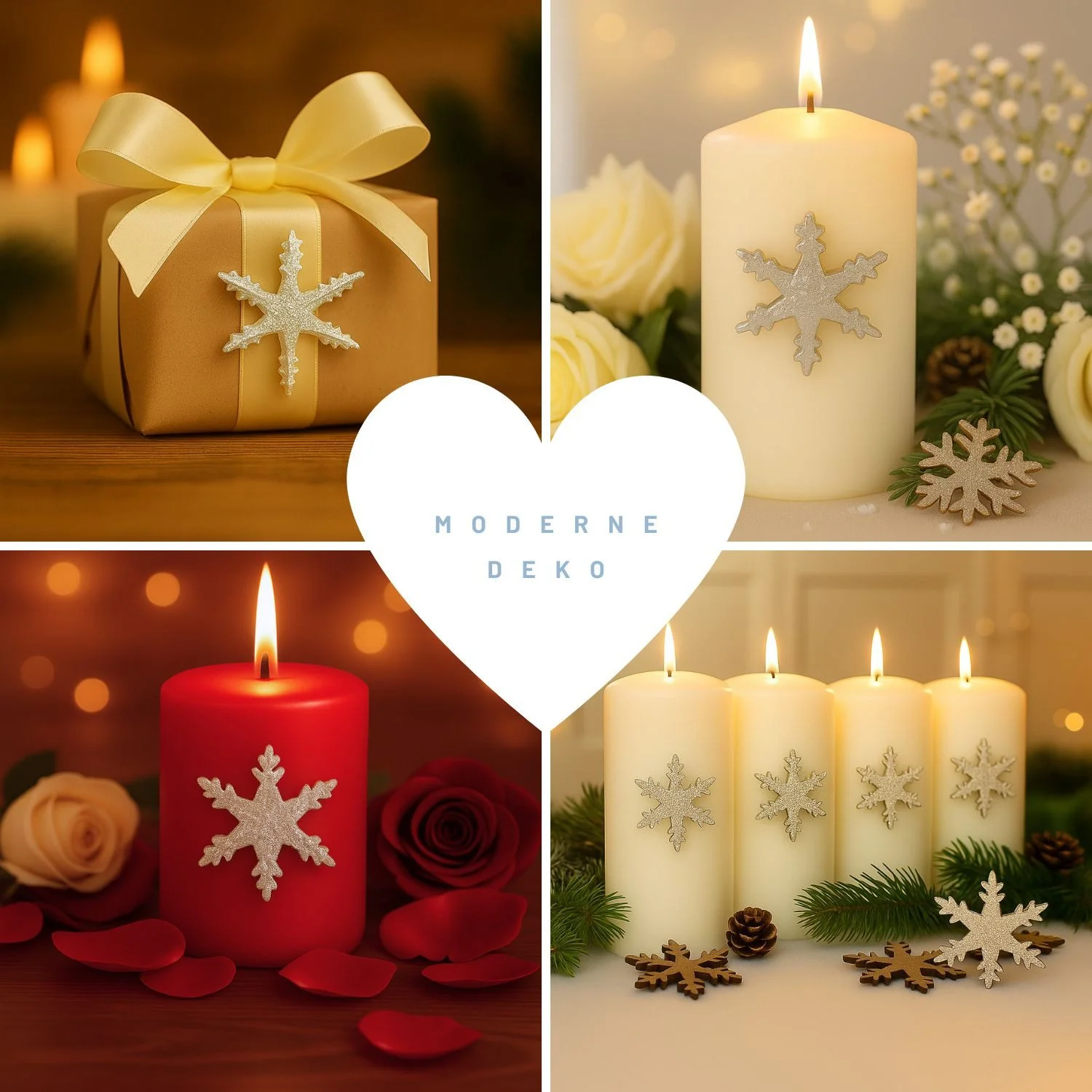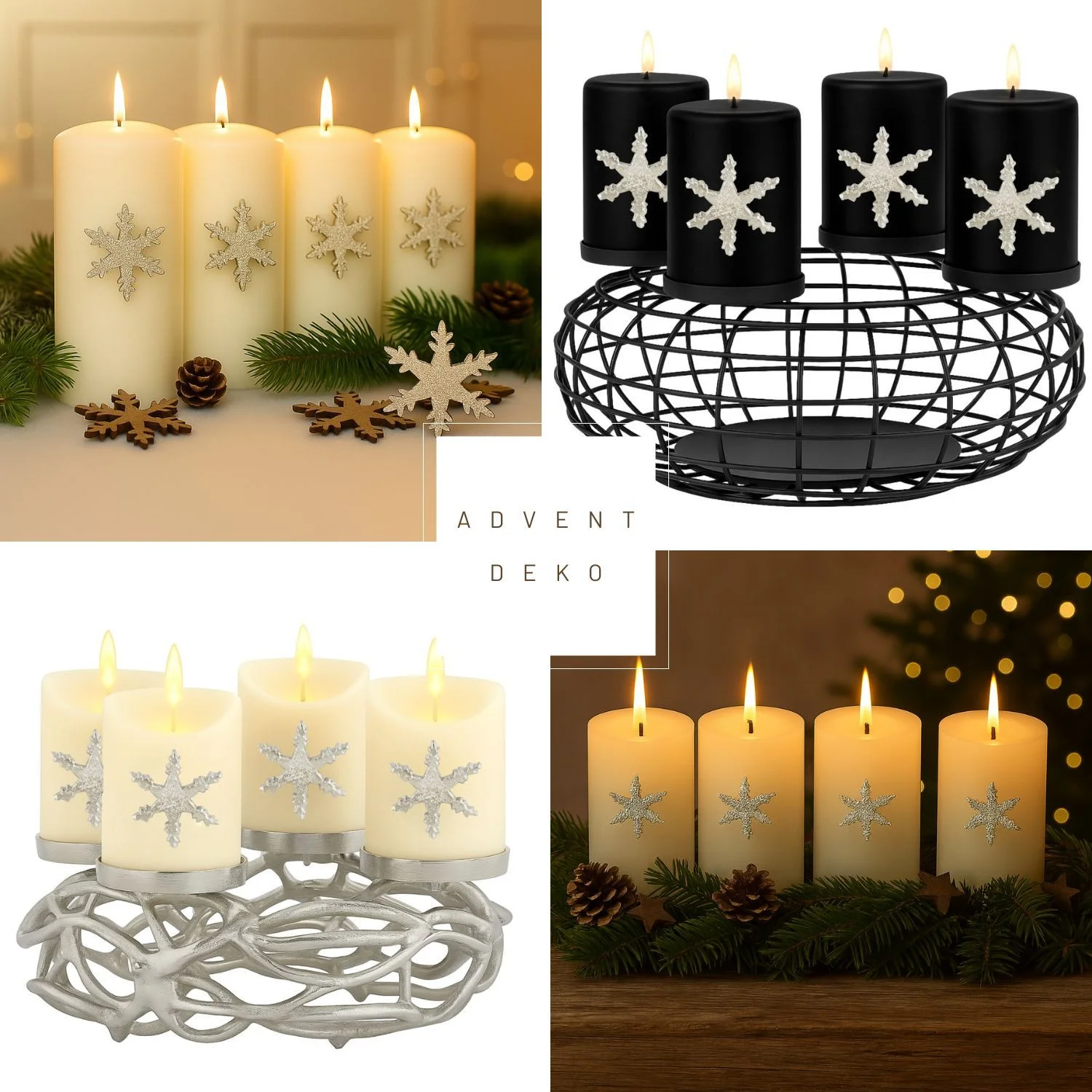 Einsatzmöglichkeiten: Adventskranz, Kerzenhalter, Windlicht, Geschenkdekoration, Hochzeits- und Weihnachtsgestaltung, Kombination mit Stumpenkerzen, Stabkerzen oder LED-Kerzen.