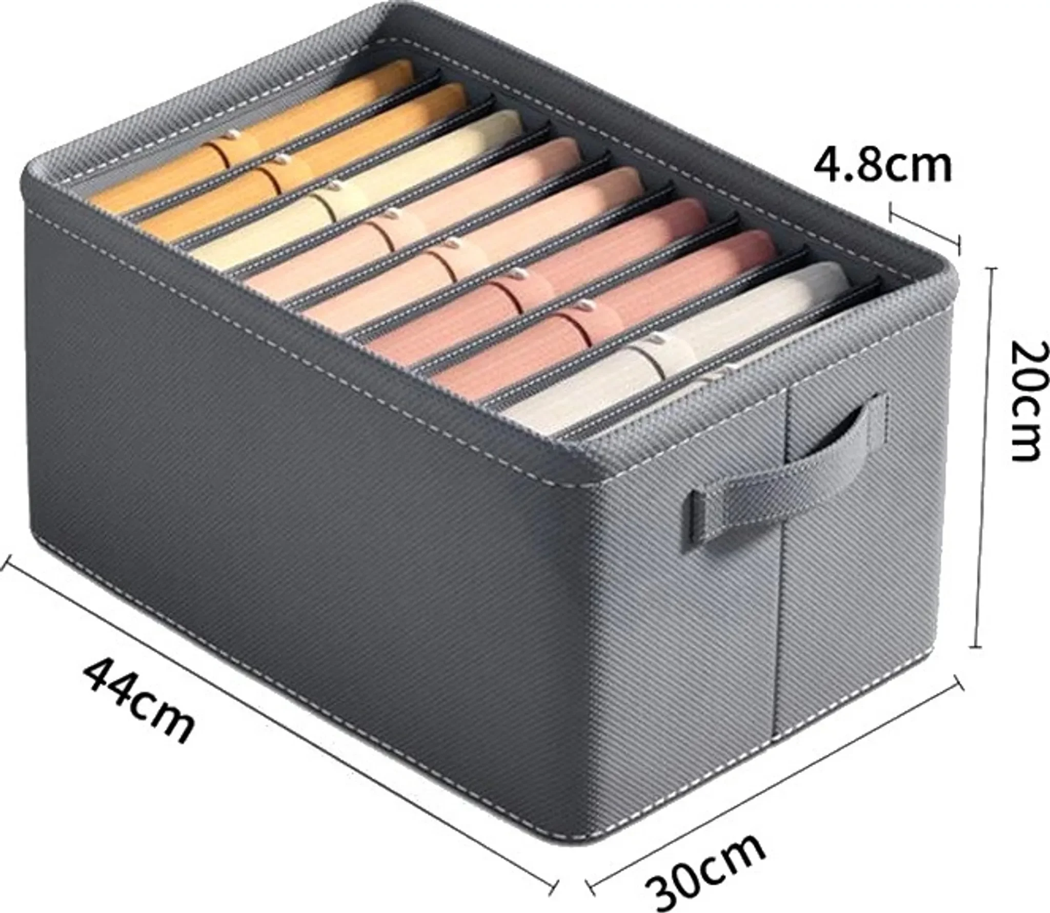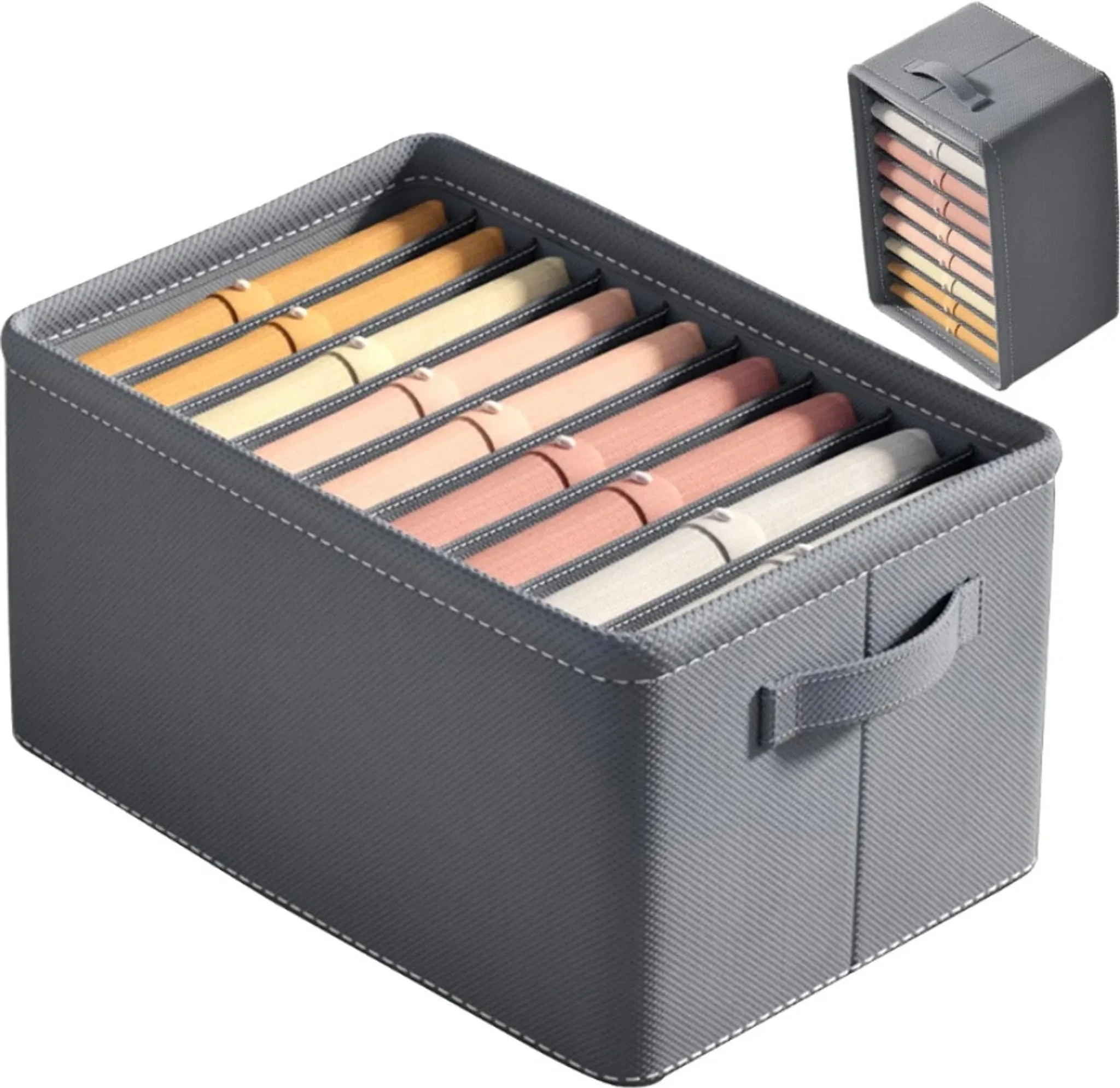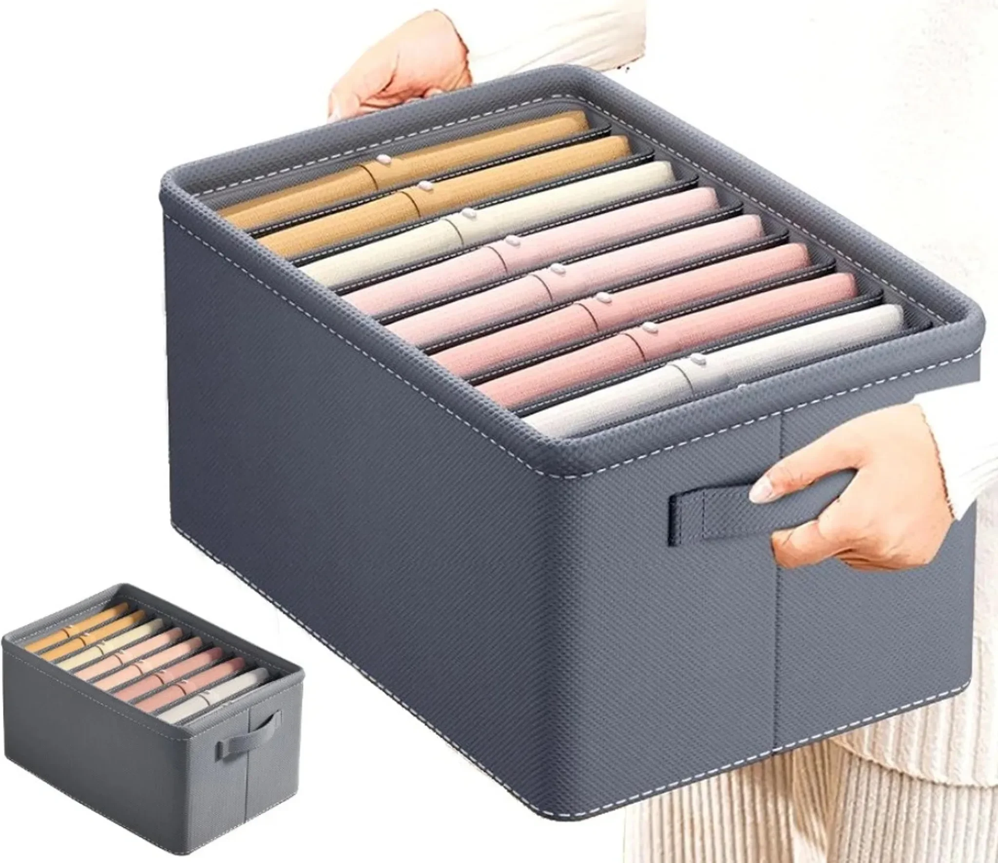 Diese starre Organizerbox bietet eine praktische Lösung zur übersichtlichen Aufbewahrung von Kleidung im Kleiderschrank. Sie eignet sich ideal für Hosen, Sweatshirts, Pullover oder Handtücher und hilft dabei, Ordnung zu schaffen, ohne Kleidungsstücke zu stapeln.