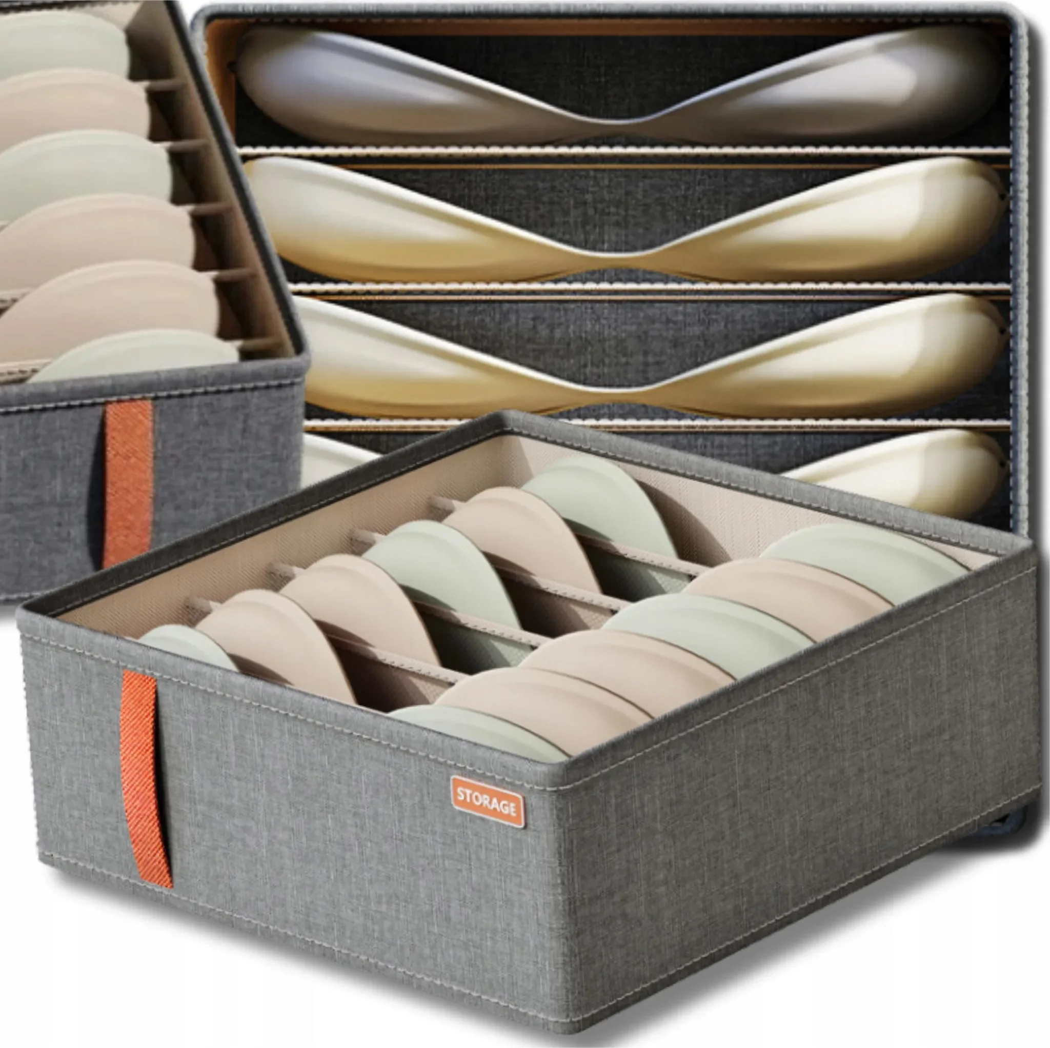 Highlights: Praktische Fächer für Unterwäsche und Accessoires, formstabil und langlebig, seitliche Tragegriffe, modernes Design in Grau, vielseitig einsetzbar auch für Kosmetik oder Kleinteile.
