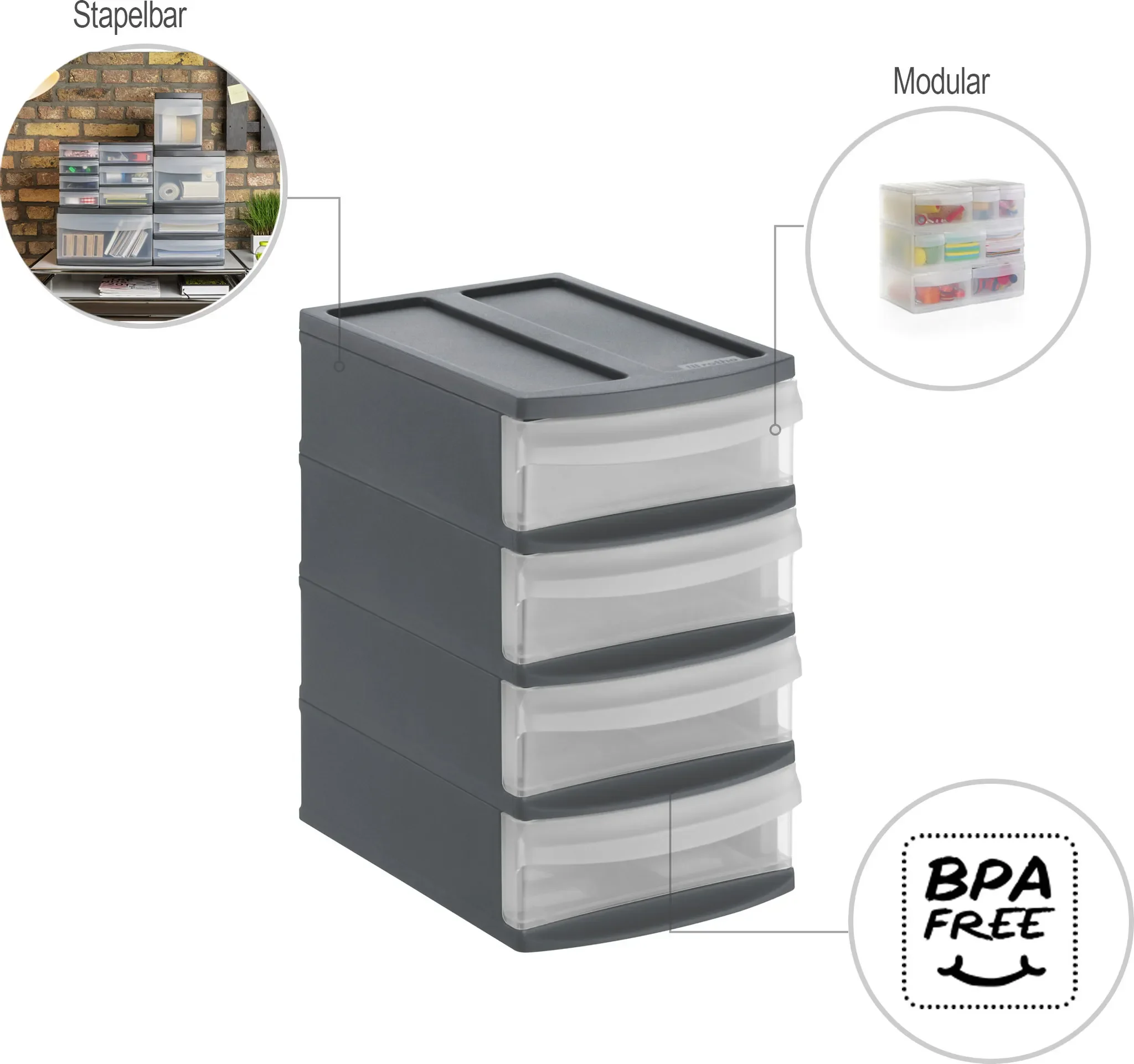 Stapelbar & erweiterbar • Transparente Schubladen • Für kleine Utensilien