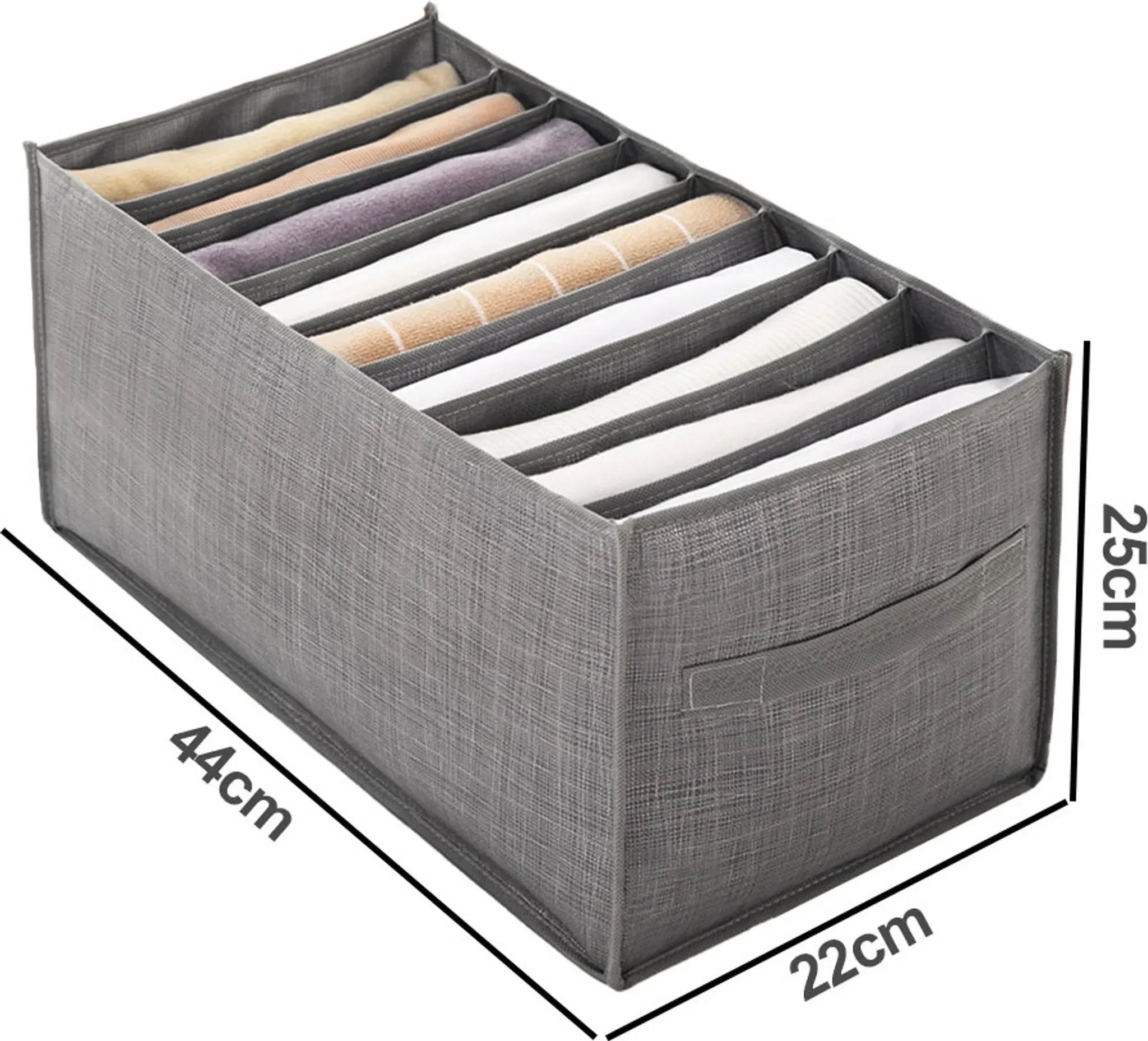 Highlights: Hohe Formstabilität durch PP-Verstärkung, stapelbar für effiziente Raumnutzung, vergrößerter Fachabstand, sauber verarbeitete Nähte für lange Lebensdauer, vielseitig einsetzbar im Schrank oder in Schubladen.
