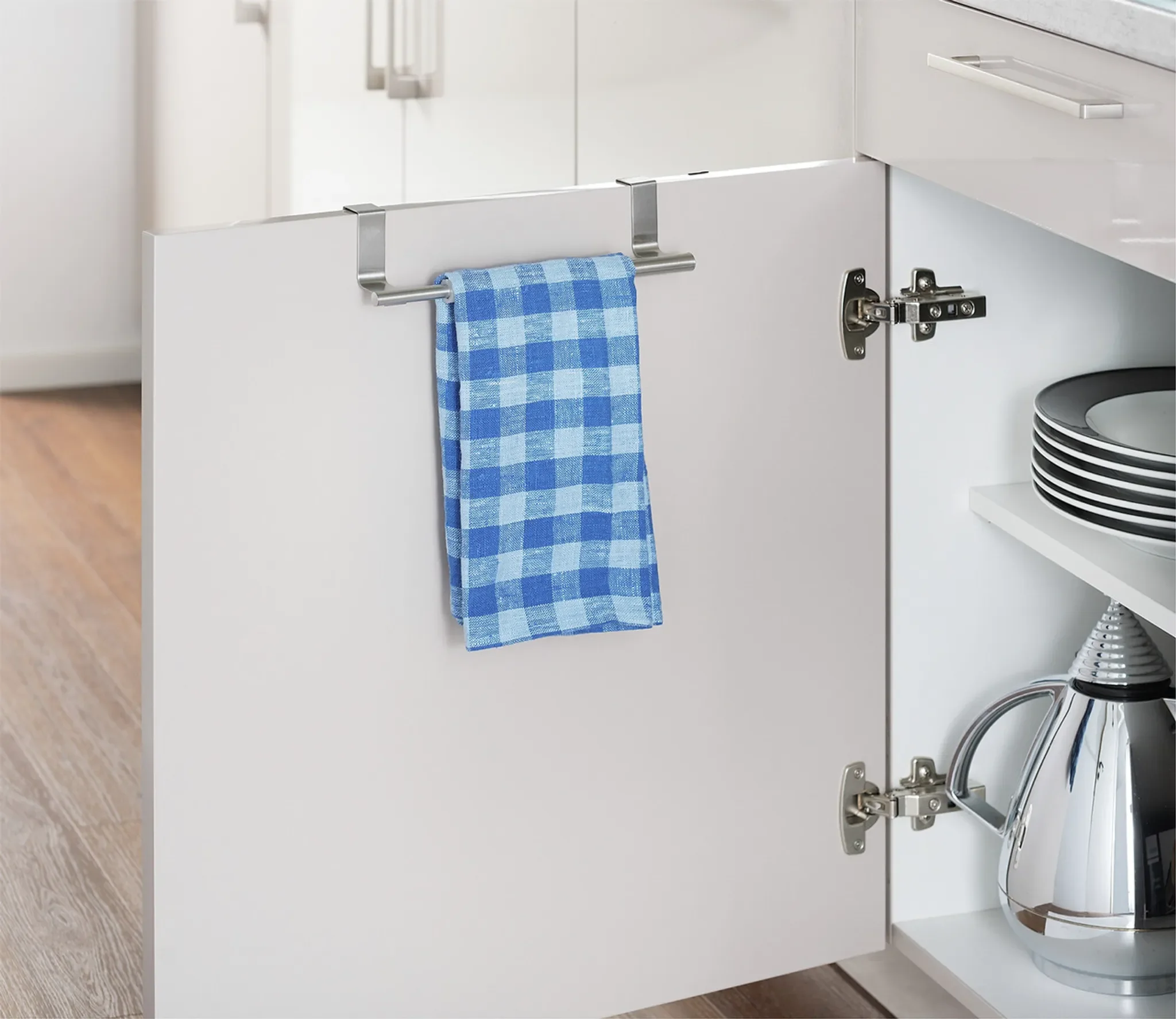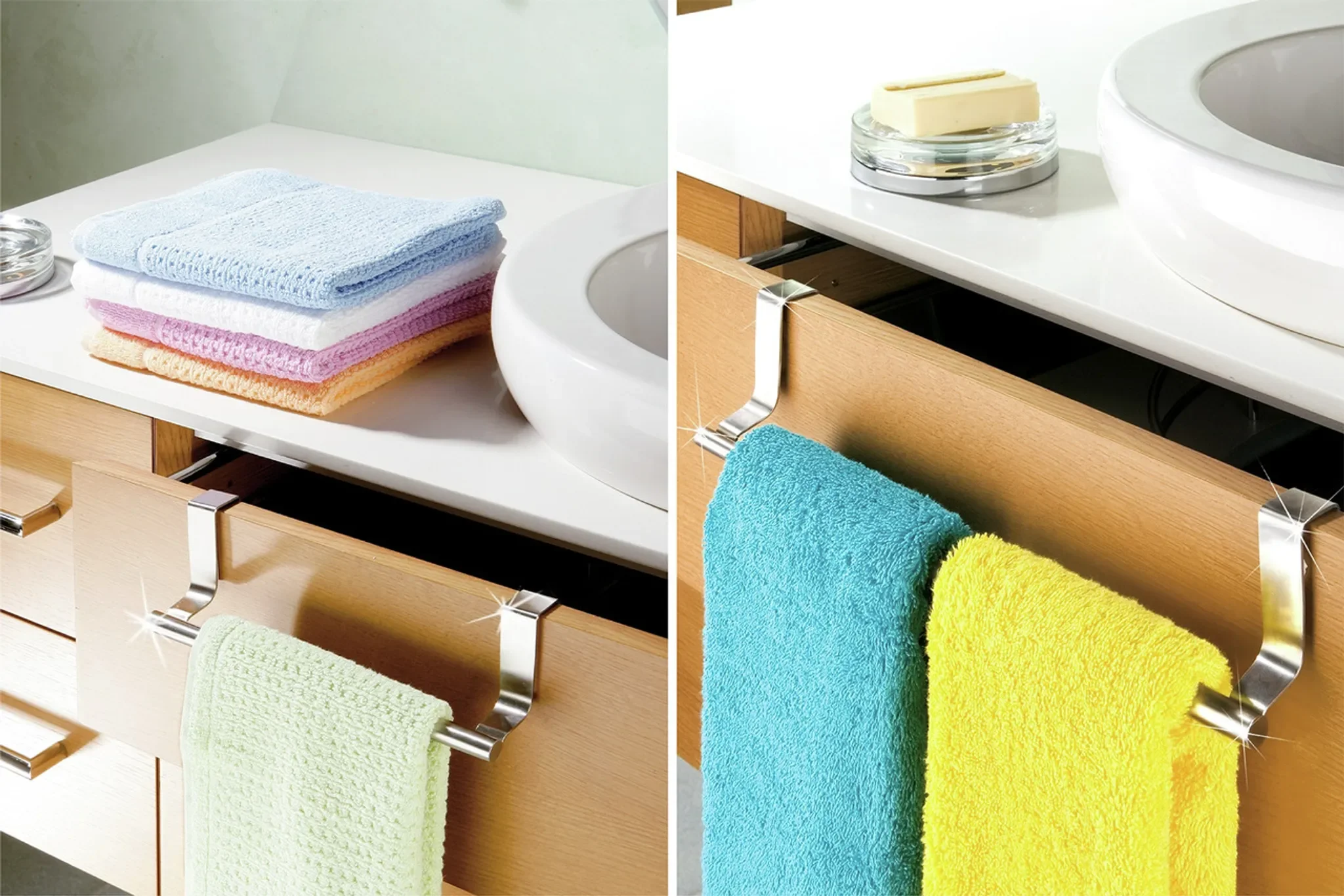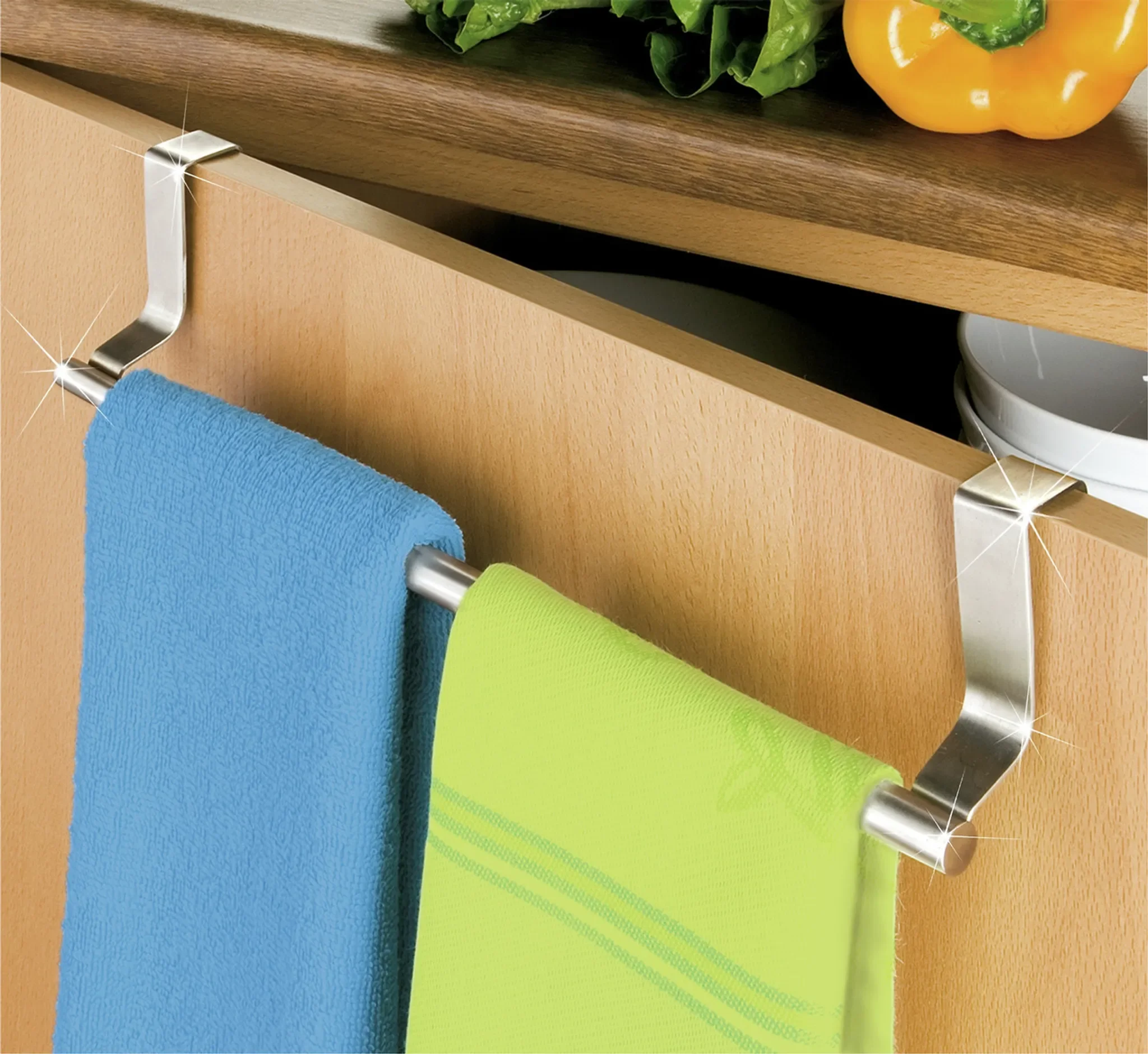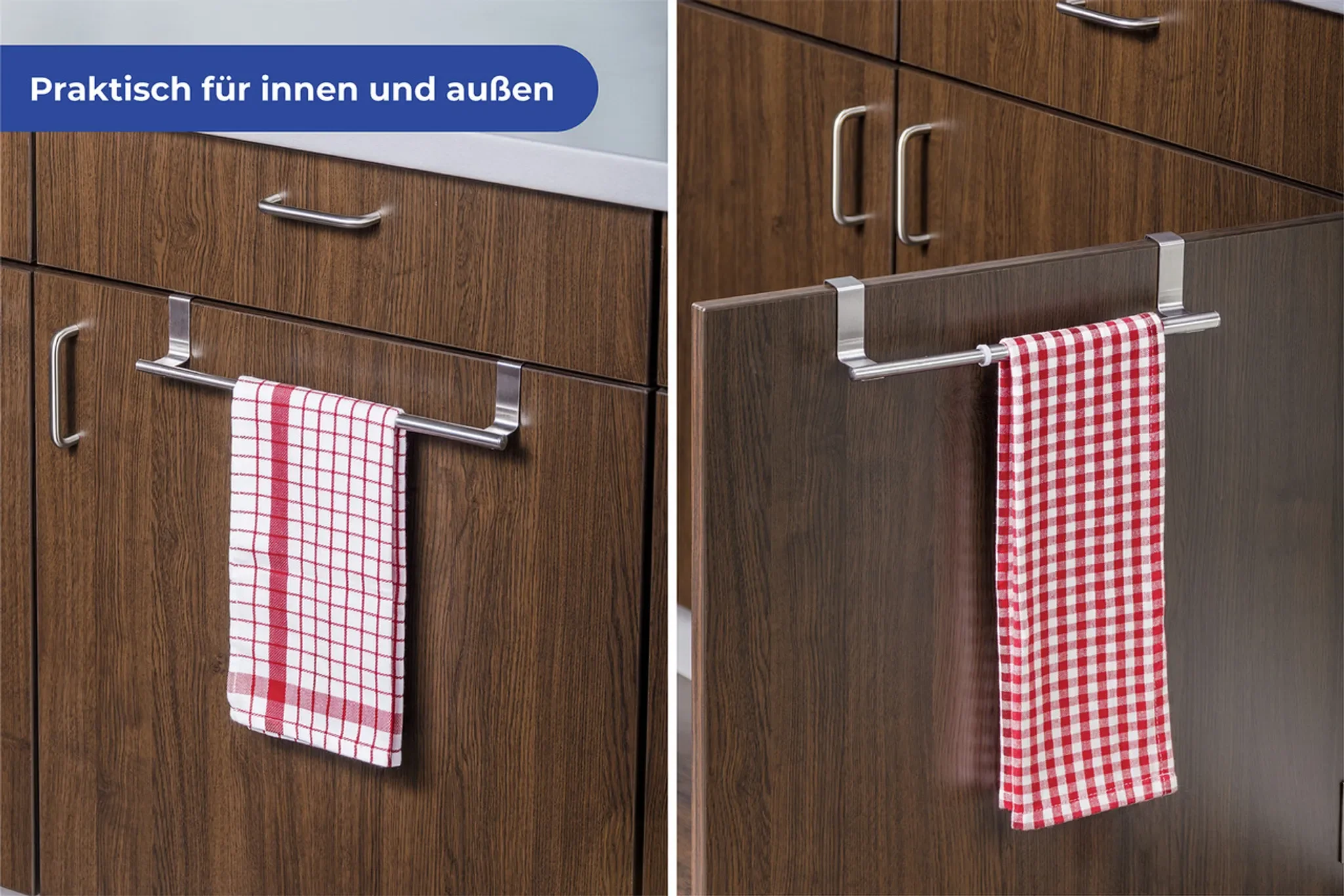 Die teleskopische Tür-Handtuchstange aus rostfreiem Edelstahl schafft schnell zusätzlichen Platz für Hand-, Trocken- oder Putztücher. Dank der ausziehbaren Konstruktion lässt sich die Breite flexibel anpassen und sorgt so für optimalen Halt.